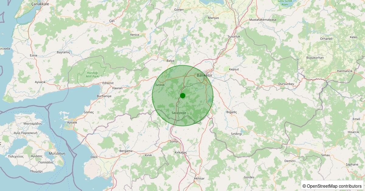 Son 7 gün içinde Savaştepe - Söğütcük noktasından 100 km yarıçap içerisinde meydana gelen diğer depremler: