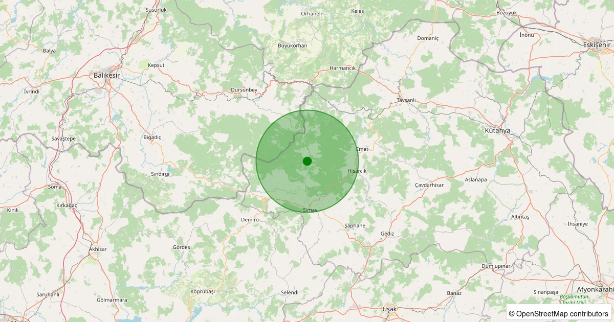 Son 7 gün içinde Simav - Yeşildere Köyü noktasından 100 km yarıçap içerisinde meydana gelen diğer depremler: