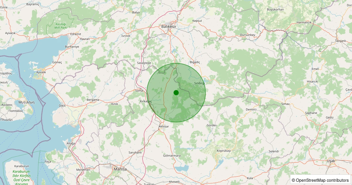 Son 7 gün içinde Akhisar - Yaykın Köyü noktasından 100 km yarıçap içerisinde meydana gelen diğer depremler: