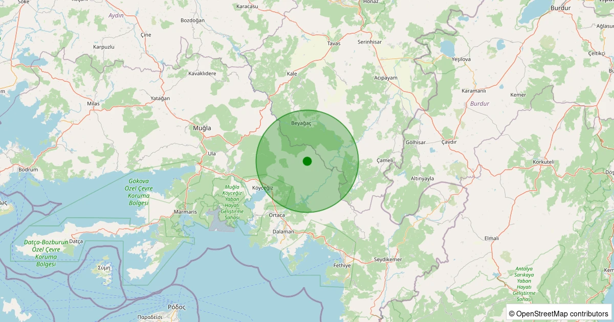 Son 7 gün içinde Köyceğiz - Otmanlar noktasından 100 km yarıçap içerisinde meydana gelen diğer depremler: