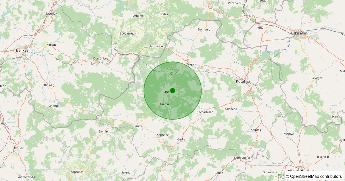 Son 7 gün içinde Emet - Gürpınar Köyü noktasından 100 km yarıçap içerisinde meydana gelen diğer depremler: