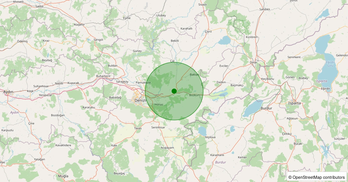Son 7 gün içinde Honaz - Kaklık noktasından 100 km yarıçap içerisinde meydana gelen diğer depremler: