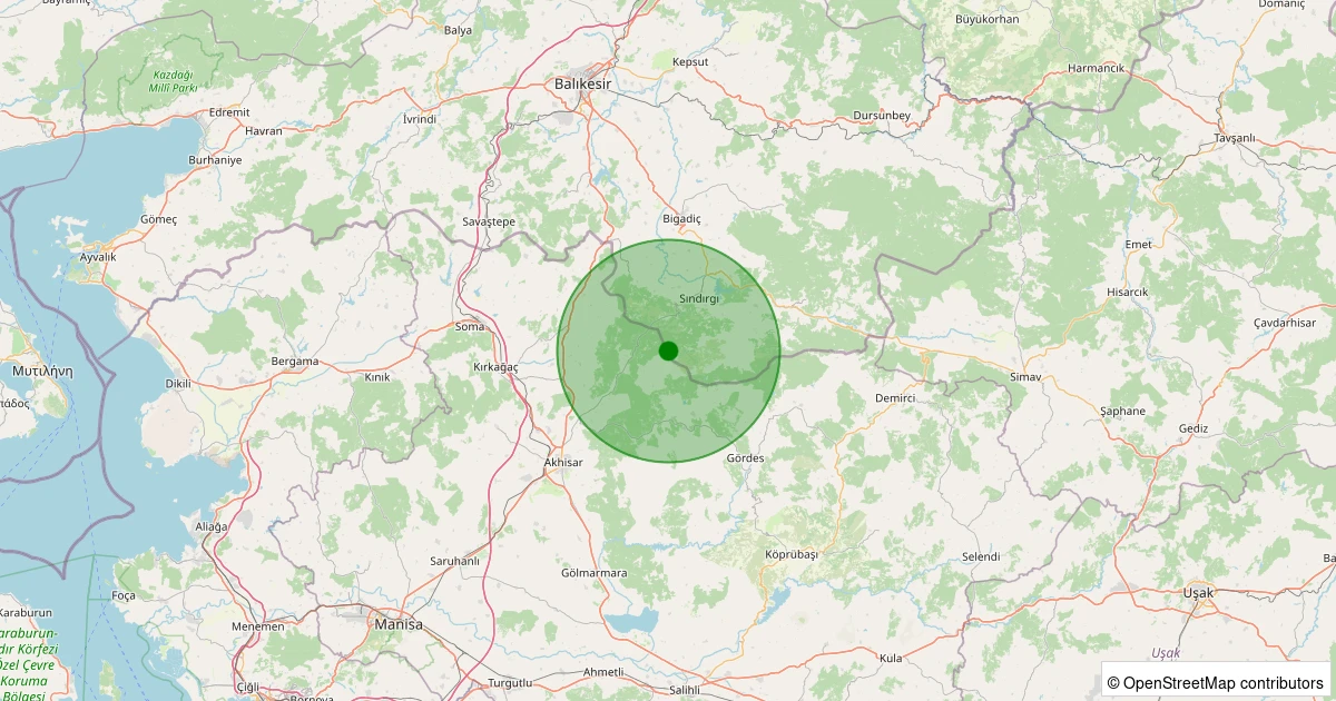 Son 7 gün içinde Akhisar - Sağrakçı Köyü noktasından 100 km yarıçap içerisinde meydana gelen diğer depremler: