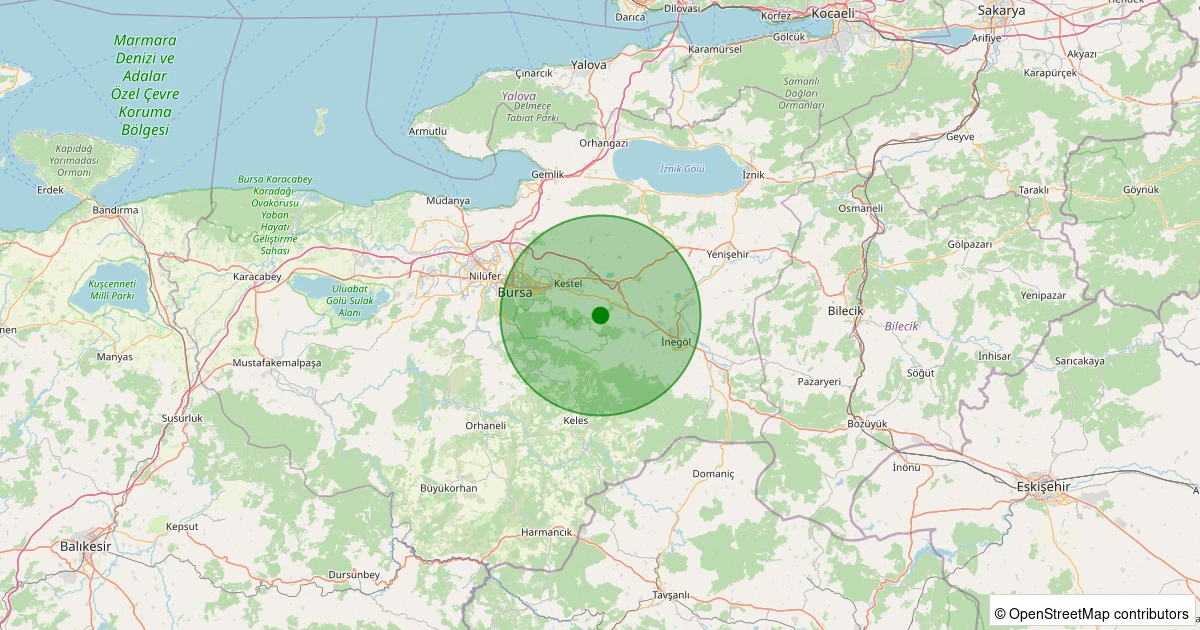 Son bir hafta içerisinde Bursa şehri Kestel noktasından 100 km yarıçap içerisinde toplamda 32 deprem kaydedilmiştir. Bu depremlerden en büyüğü 2.8 büyüklüğünde ve en sığ odaklısı 0.00 kilometre derinlikte gerçekleşmiştir.