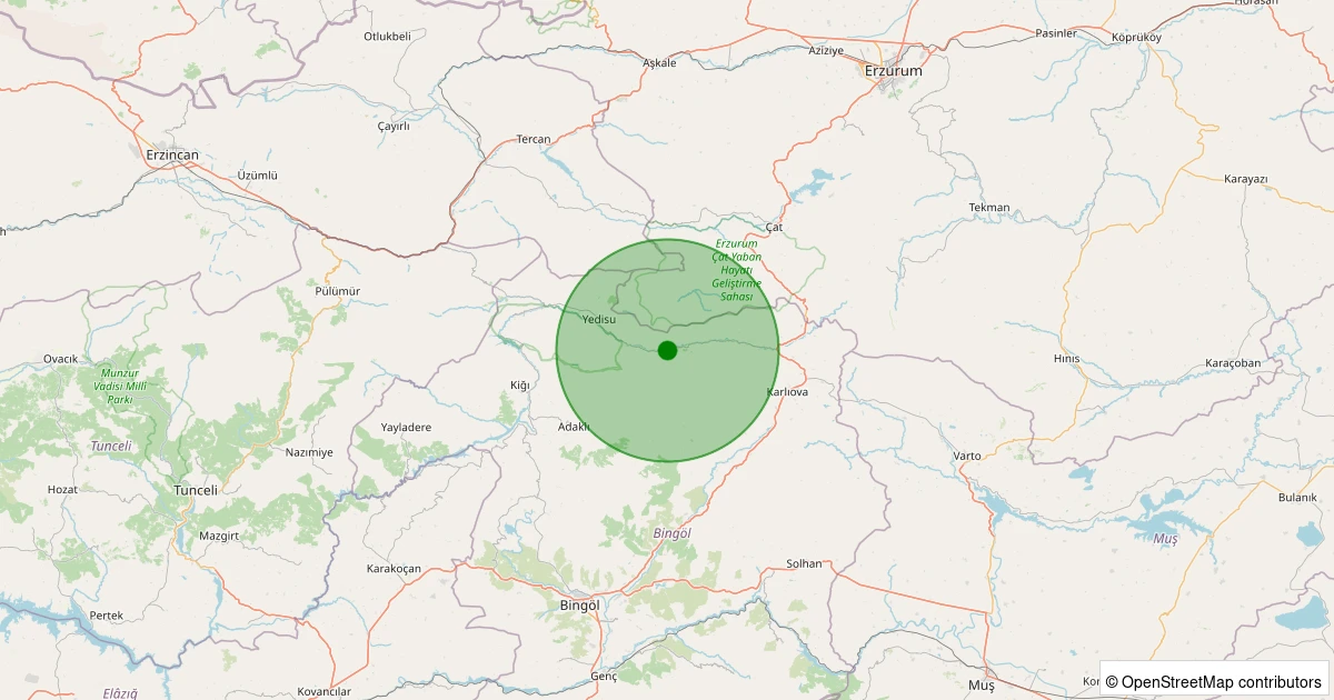 Son 7 gün içinde Karlıova - Kaynarpınar Köyü noktasından 100 km yarıçap içerisinde meydana gelen diğer depremler: