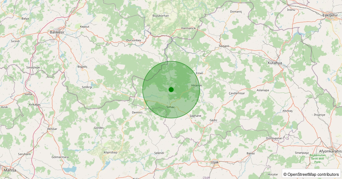 Son 7 gün içinde Simav - Yemişli Köyü noktasından 100 km yarıçap içerisinde meydana gelen diğer depremler: