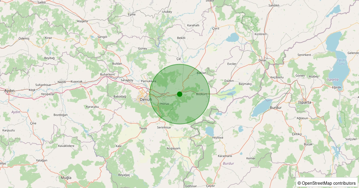 Son 7 gün içinde Çal - Belevi Köyü noktasından 100 km yarıçap içerisinde meydana gelen diğer depremler: