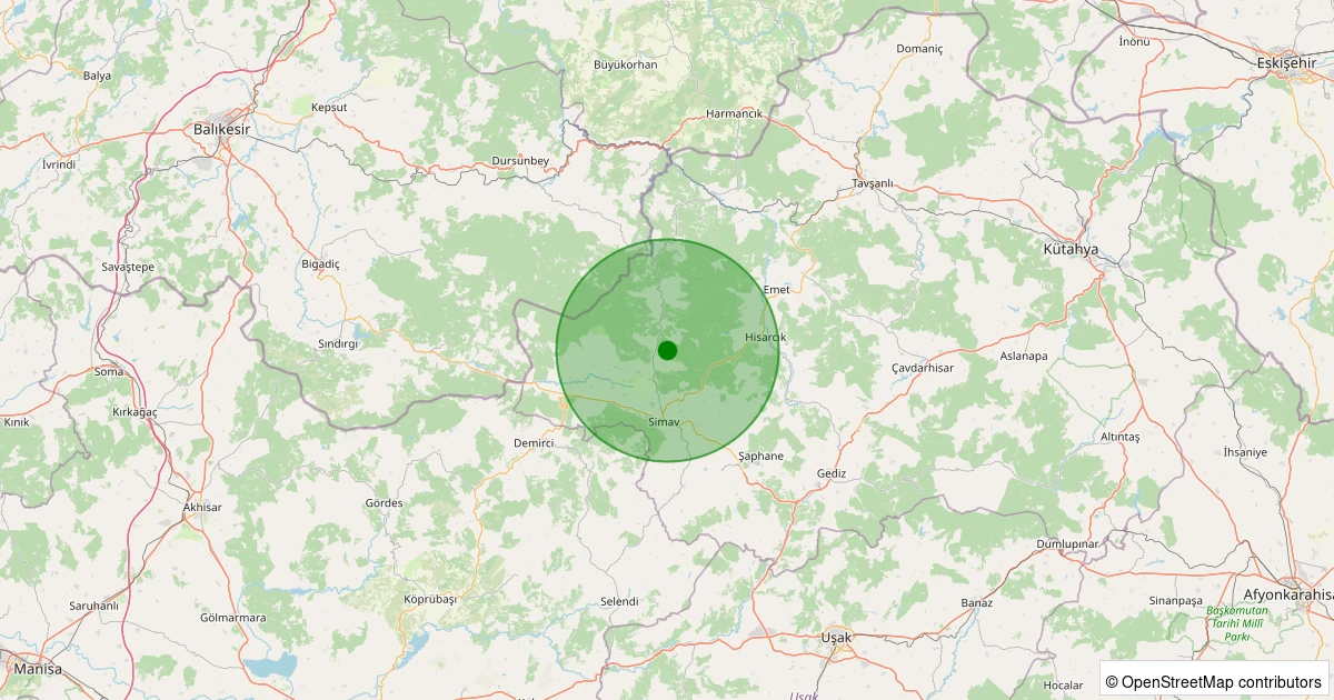 Son 7 gün içinde Simav - Yemişli Köyü noktasından 100 km yarıçap içerisinde meydana gelen diğer depremler:
