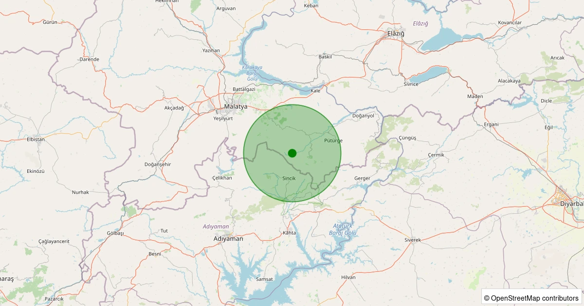Son 7 gün içinde Pütürge - Başmezra Köyü noktasından 100 km yarıçap içerisinde meydana gelen diğer depremler: