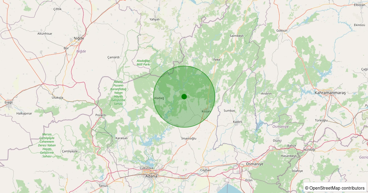 Son 7 gün içinde Kozan - Akdam noktasından 100 km yarıçap içerisinde meydana gelen diğer depremler: