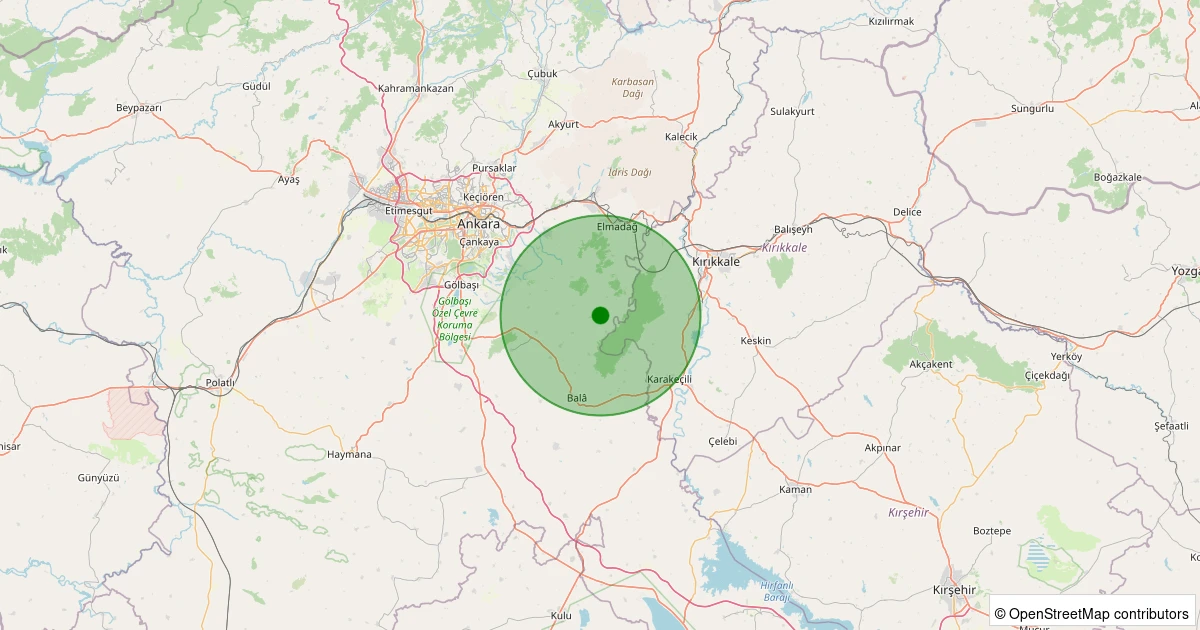 Son bir hafta içerisinde Ankara şehri Elmadağ - Süleymanlı noktasından 100 km yarıçap içerisinde toplamda 14 deprem kaydedilmiştir. Bu depremlerden en büyüğü 1.5 büyüklüğünde ve en sığ odaklısı 0.00 kilometre derinlikte gerçekleşmiştir.
