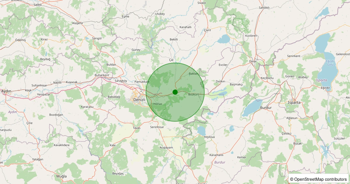 Son 7 gün içinde Honaz - Kaklık noktasından 100 km yarıçap içerisinde meydana gelen diğer depremler: