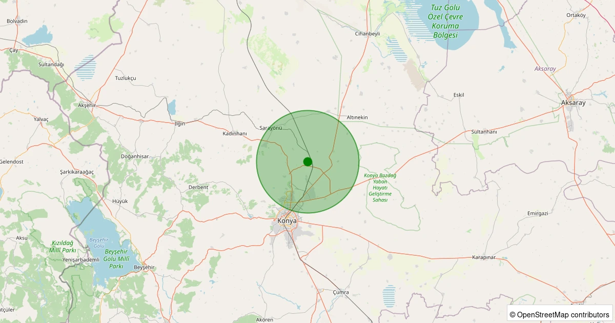 Son 7 gün içinde Selçuklu - Çandır Köyü noktasından 100 km yarıçap içerisinde meydana gelen diğer depremler: