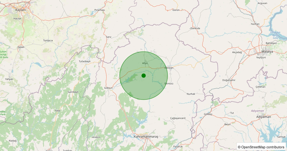 Son 7 gün içinde Göksun - Kamışcık noktasından 100 km yarıçap içerisinde meydana gelen diğer depremler: