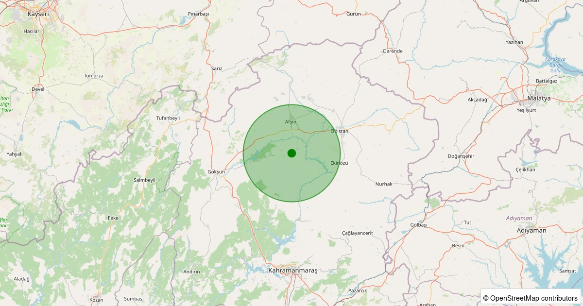 Son 7 gün içinde Göksun noktasından 100 km yarıçap içerisinde meydana gelen diğer depremler: