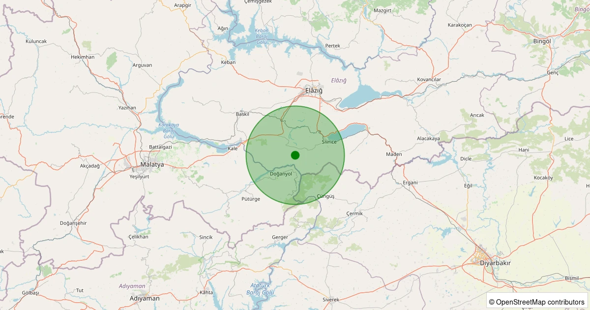 Son 7 gün içinde Sivrice - Uslu Köyü noktasından 100 km yarıçap içerisinde meydana gelen diğer depremler: