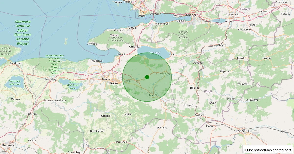 Son bir hafta içerisinde Bursa şehri Yenişehir noktasından 100 km yarıçap içerisinde toplamda 35 deprem kaydedilmiştir. Bu depremlerden en büyüğü 2.8 büyüklüğünde ve en sığ odaklısı 0.00 kilometre derinlikte gerçekleşmiştir.