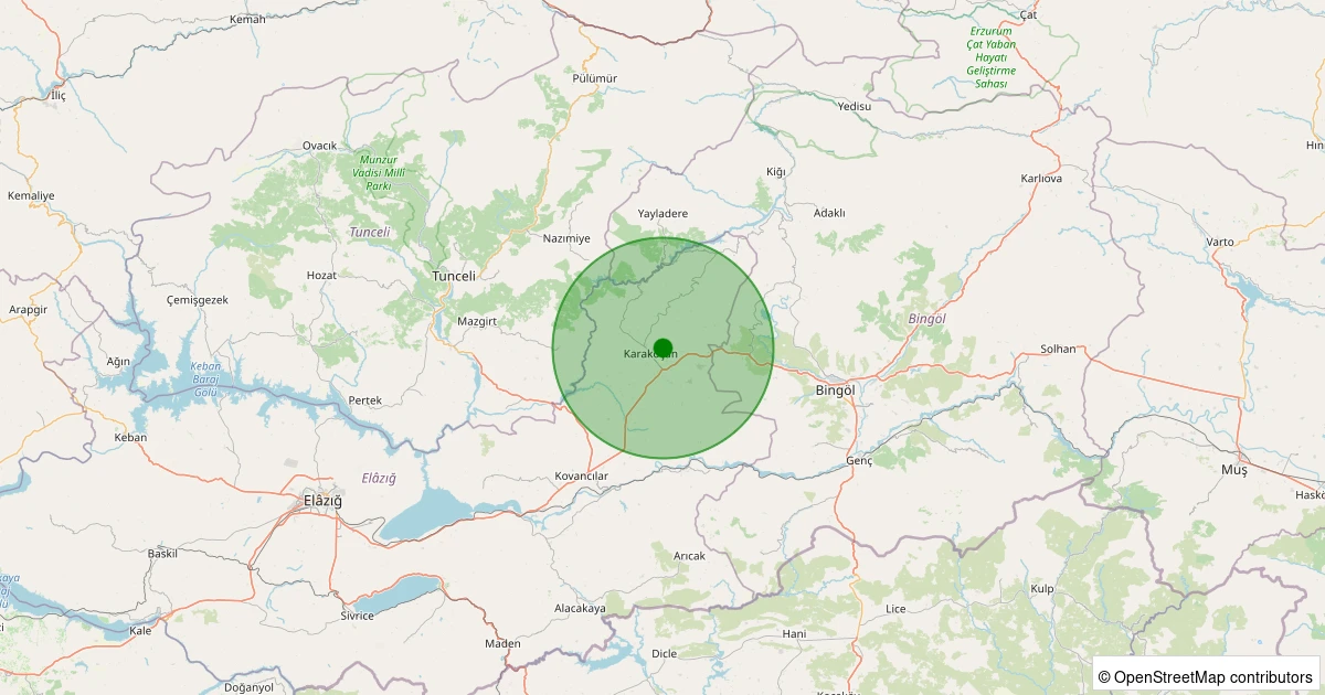 Son 7 gün içinde Karakoçan - Kalecik Köyü noktasından 100 km yarıçap içerisinde meydana gelen diğer depremler: