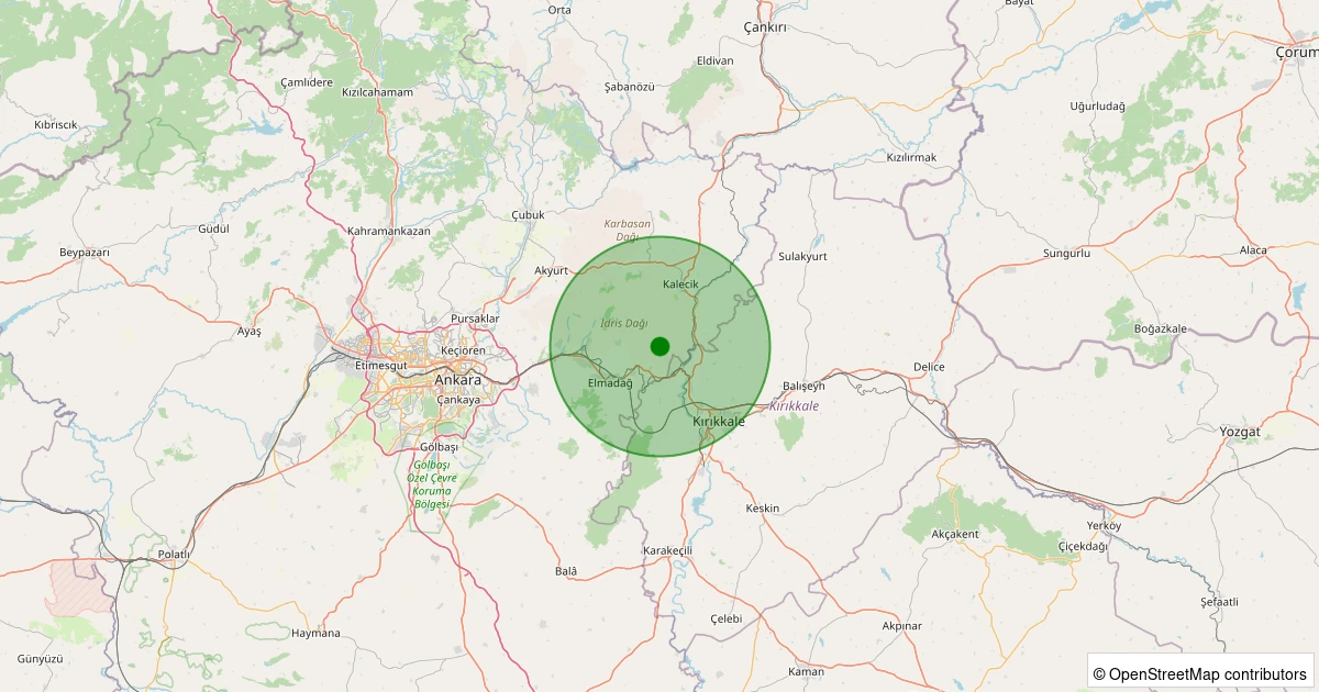 Son bir hafta içerisinde Ankara şehri Elmadağ - Kayadibi noktasından 100 km yarıçap içerisinde toplamda 12 deprem kaydedilmiştir. Bu depremlerden en büyüğü 1.5 büyüklüğünde ve en sığ odaklısı 0.00 kilometre derinlikte gerçekleşmiştir.