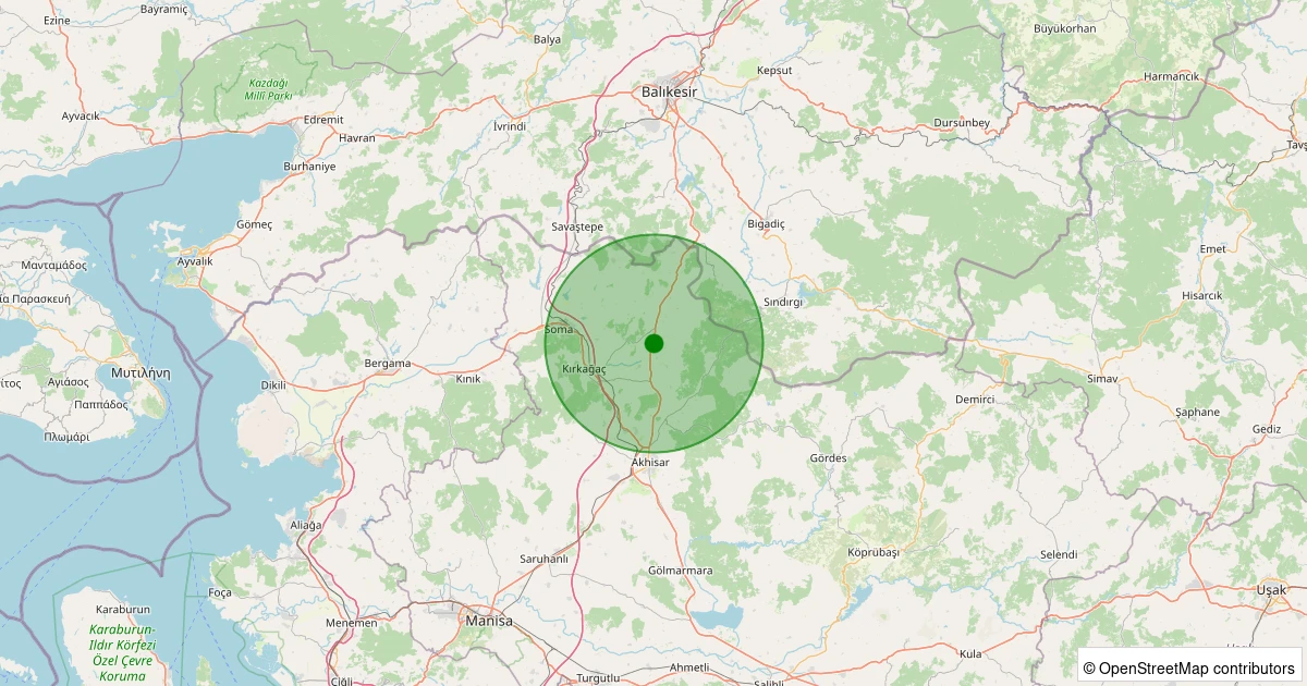 Son 7 gün içinde Kırkağaç - Gelenbe noktasından 100 km yarıçap içerisinde meydana gelen diğer depremler: