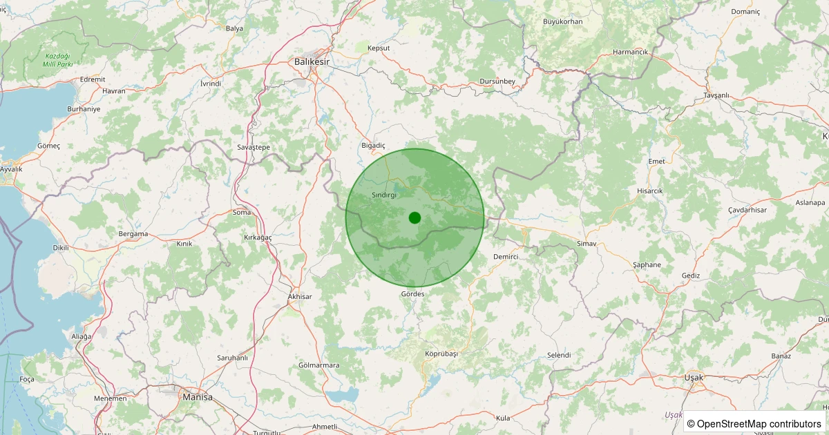 Son 7 gün içinde Sındırgı - Yüreğil/Merkez noktasından 100 km yarıçap içerisinde meydana gelen diğer depremler: