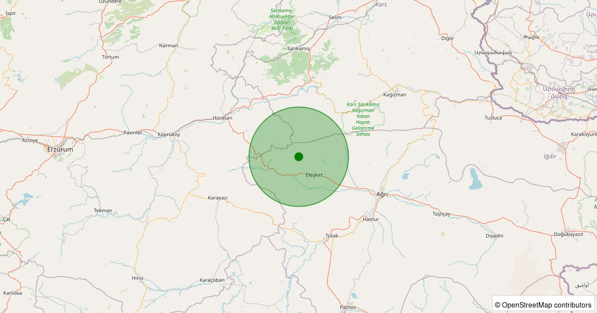 Son 7 gün içinde Eleşkirt - Çatkösedağ Köyü noktasından 100 km yarıçap içerisinde meydana gelen diğer depremler: