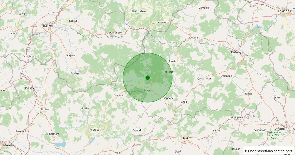 Son 7 gün içinde Simav - Yemişli Köyü noktasından 100 km yarıçap içerisinde meydana gelen diğer depremler: