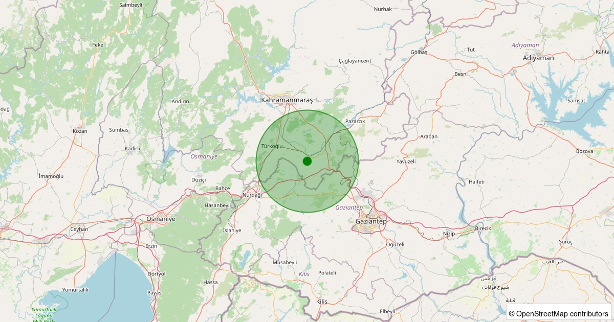 Son 7 gün içinde Kahramanmaraş noktasından 100 km yarıçap içerisinde meydana gelen diğer depremler: