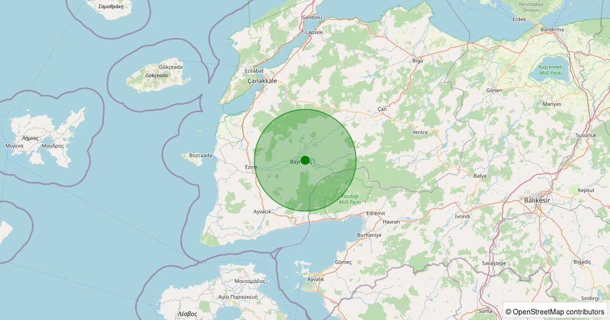 Son 7 gün içinde Bayramiç - Camikebir noktasından 100 km yarıçap içerisinde meydana gelen diğer depremler: