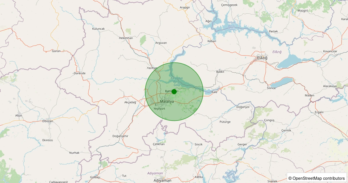 Son 7 gün içinde Battalgazi - Karahan noktasından 100 km yarıçap içerisinde meydana gelen diğer depremler: