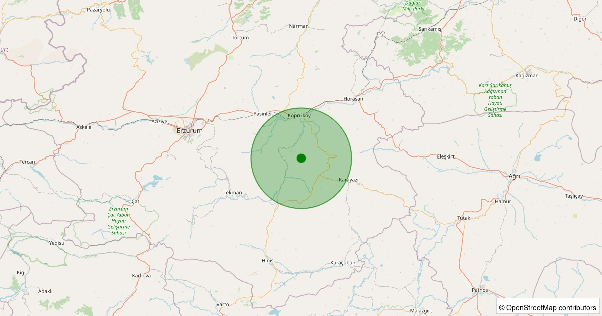 Son 7 gün içinde Köprüköy - Sarıtaş noktasından 100 km yarıçap içerisinde meydana gelen diğer depremler: