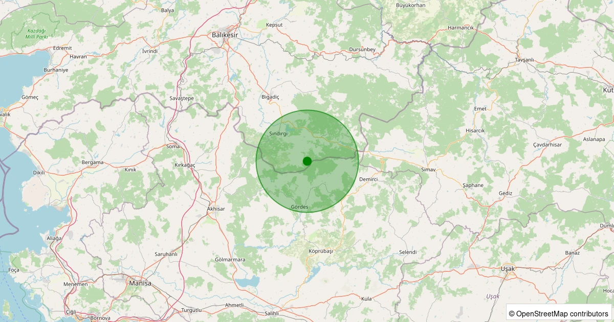 Son 7 gün içinde Sındırgı - Yüreğil/Merkez noktasından 100 km yarıçap içerisinde meydana gelen diğer depremler: