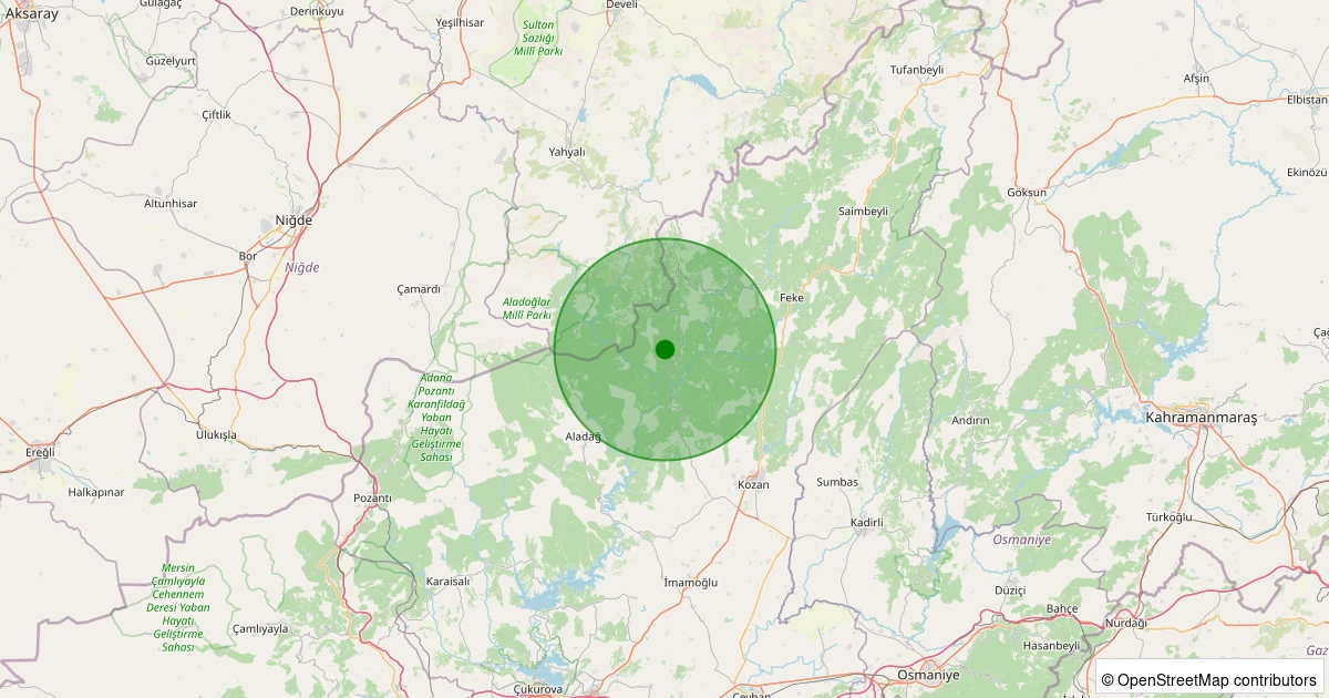 Son 7 gün içinde Kozan - Ergenuşağı noktasından 100 km yarıçap içerisinde meydana gelen diğer depremler: