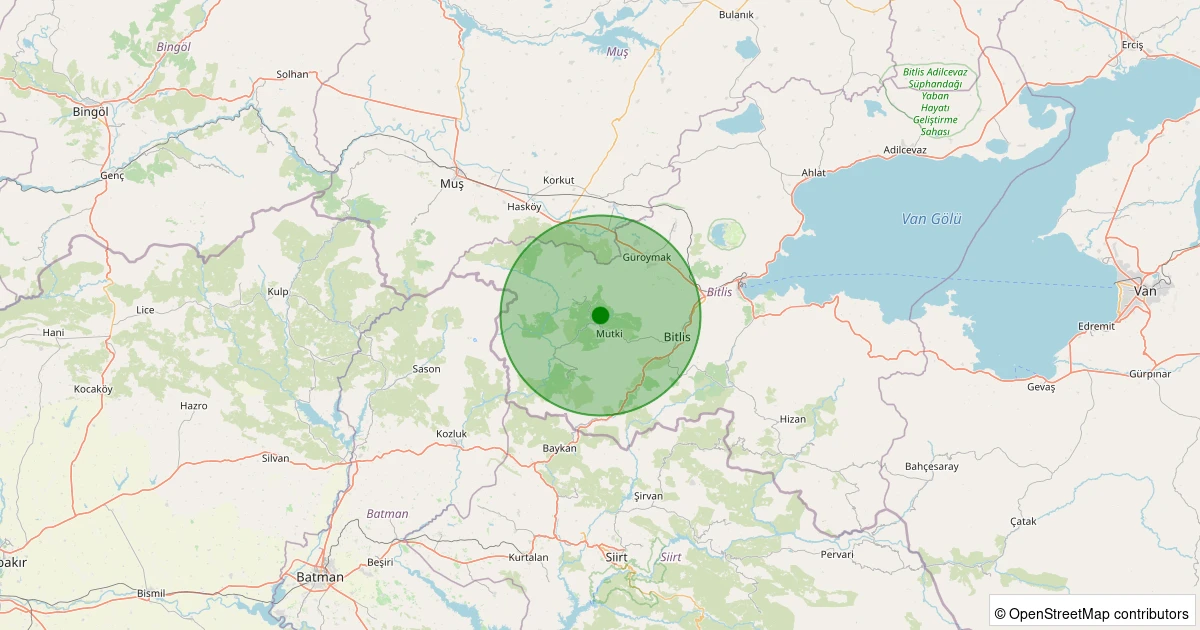 Son 7 gün içinde Mutki - Çatalsöğüt Köyü noktasından 100 km yarıçap içerisinde meydana gelen diğer depremler: