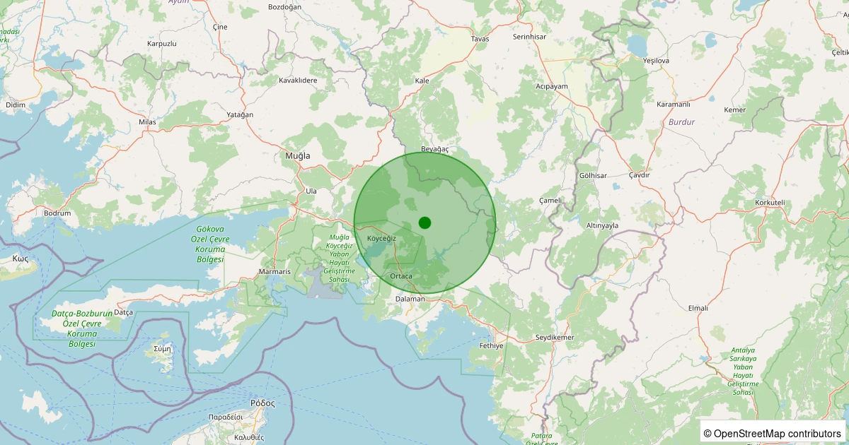 Son 7 gün içinde Köyceğiz - Çayhisar noktasından 100 km yarıçap içerisinde meydana gelen diğer depremler: