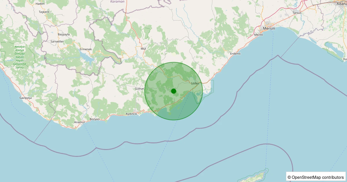 Son 7 gün içinde Silifke - İmamuşağı noktasından 100 km yarıçap içerisinde meydana gelen diğer depremler: