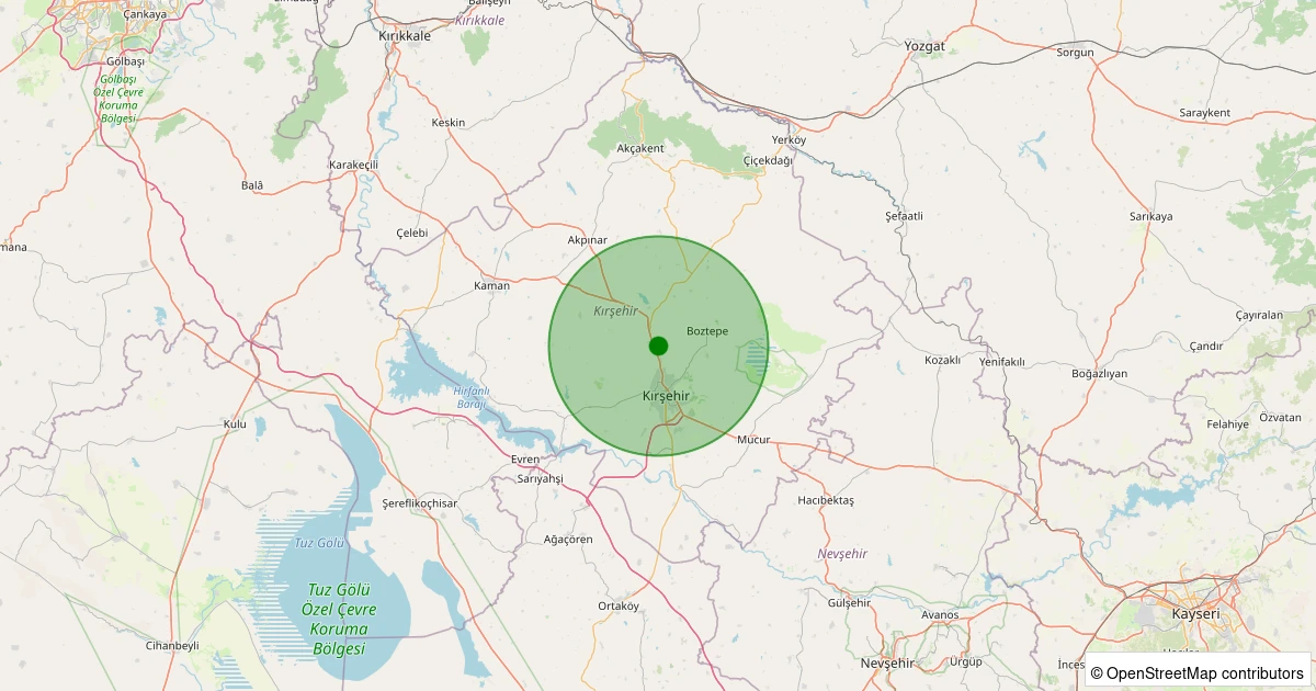 Son bir hafta içerisinde Kırşehir şehri Kırşehir noktasından 100 km yarıçap içerisinde toplamda 17 deprem kaydedilmiştir. Bu depremlerden en büyüğü 1.7 büyüklüğünde ve en sığ odaklısı 5.26 kilometre derinlikte gerçekleşmiştir.