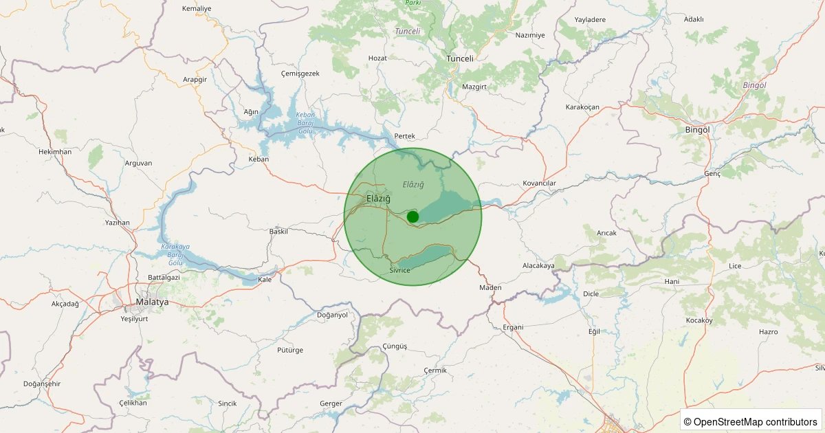 Son bir hafta içerisinde Elazığ şehri Merkez - Hoğu (Yurtbaşı) Köyü noktasından 100 km yarıçap içerisinde toplamda 133 deprem kaydedilmiştir. Bu depremlerden en büyüğü 2.4 büyüklüğünde ve en sığ odaklısı 1.10 kilometre derinlikte gerçekleşmiştir.