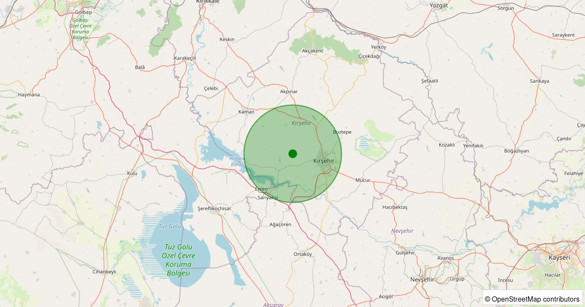 Son bir hafta içerisinde Kırşehir şehri Kırşehir noktasından 100 km yarıçap içerisinde toplamda 17 deprem kaydedilmiştir. Bu depremlerden en büyüğü 1.7 büyüklüğünde ve en sığ odaklısı 5.26 kilometre derinlikte gerçekleşmiştir.