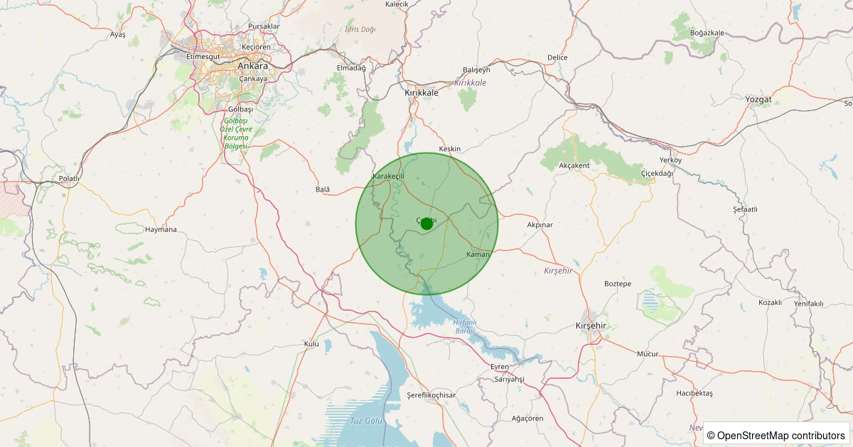 Son bir hafta içerisinde Kırıkkale şehri Çelebi - Karaağaç Köyü noktasından 100 km yarıçap içerisinde toplamda 21 deprem kaydedilmiştir. Bu depremlerden en büyüğü 1.7 büyüklüğünde ve en sığ odaklısı 0.00 kilometre derinlikte gerçekleşmiştir.