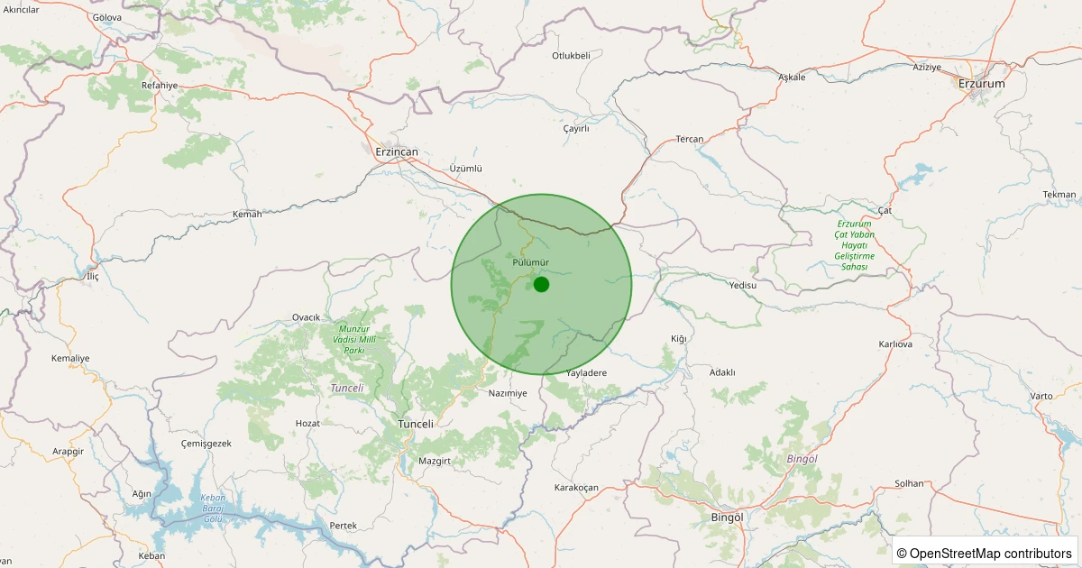 Son 7 gün içinde Pülümür - Çağlayan Köyü noktasından 100 km yarıçap içerisinde meydana gelen diğer depremler: