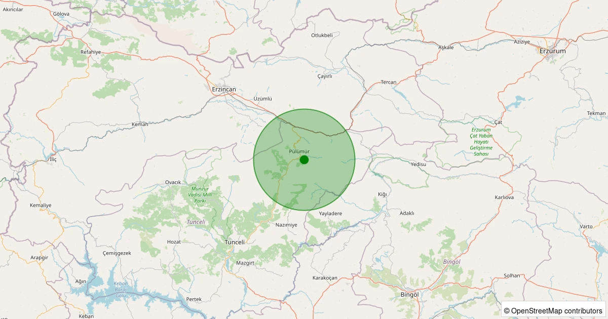 EMSC üzerinden alınan ölçümlere göre Pülümür - Turnadere Köyü bölgesinde 26.12.2025 22:29 tarihinde gece saatlerinde 1.8 büyüklüğünde bir deprem meydana geldi.