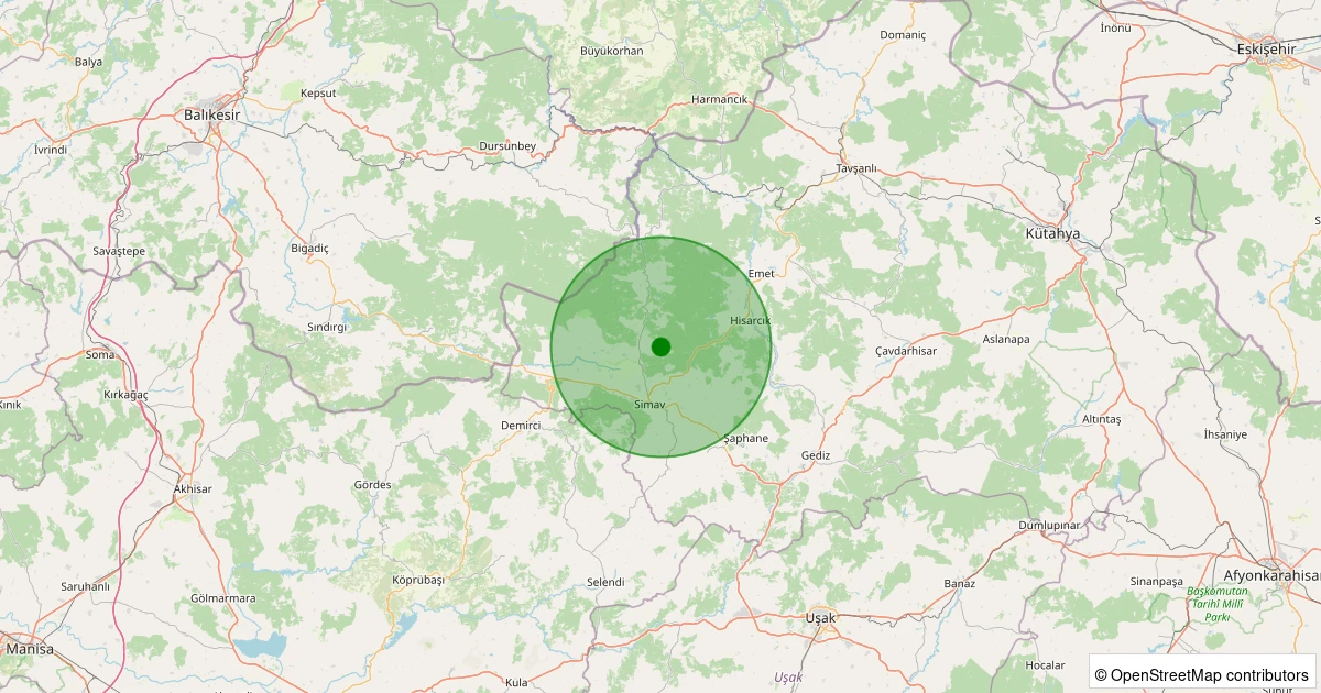 Son 7 gün içinde Simav - Eğirler Köyü noktasından 100 km yarıçap içerisinde meydana gelen diğer depremler: