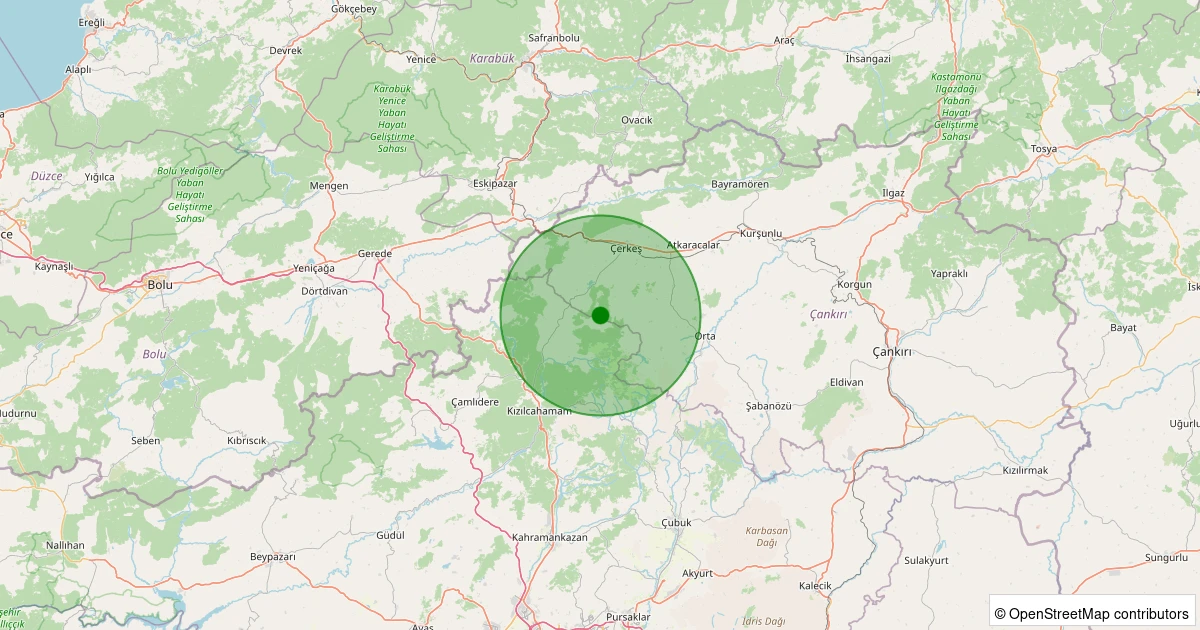 Son 7 gün içinde Çerkeş - Kısaç Köyü noktasından 100 km yarıçap içerisinde meydana gelen diğer depremler: