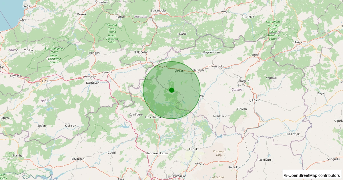Son 7 gün içinde Çerkeş - Kısaç Köyü noktasından 100 km yarıçap içerisinde meydana gelen diğer depremler: