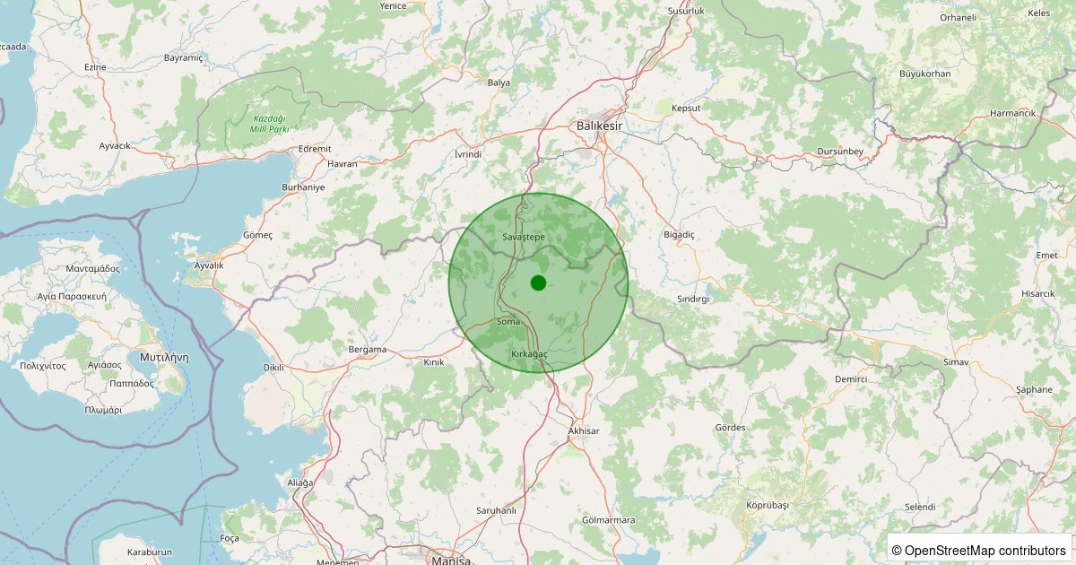Son 7 gün içinde Soma - Kozluören noktasından 100 km yarıçap içerisinde meydana gelen diğer depremler: