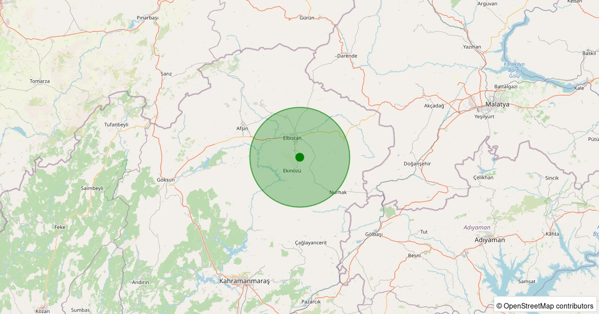 Son 7 gün içinde Elbistan noktasından 100 km yarıçap içerisinde meydana gelen diğer depremler: