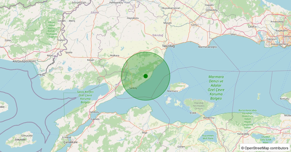 Son 7 gün içinde Şarköy - Mursallı noktasından 100 km yarıçap içerisinde meydana gelen diğer depremler: