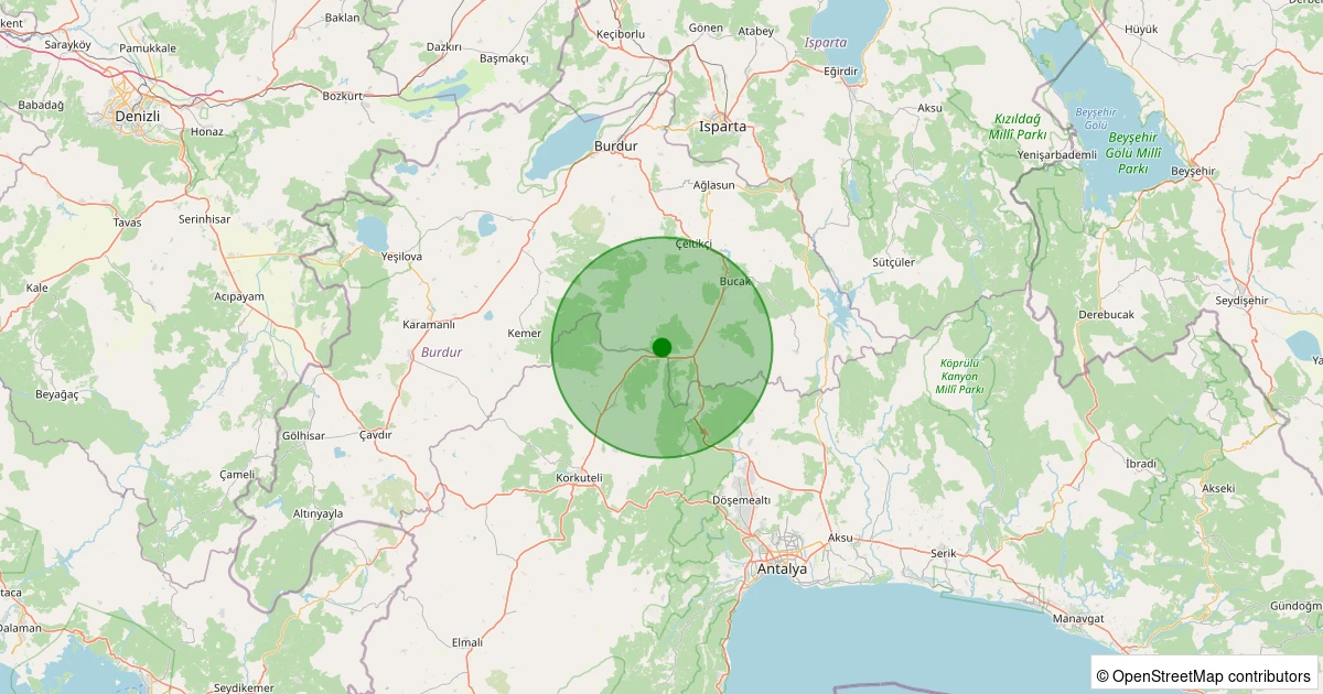 Son 7 gün içinde Bucak noktasından 100 km yarıçap içerisinde meydana gelen diğer depremler: