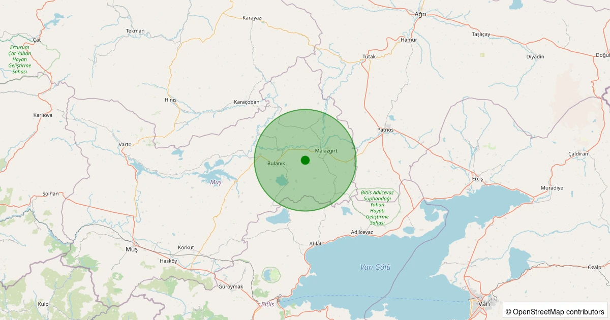 Son 7 gün içinde Malazgirt - Hasretpınar Köyü noktasından 100 km yarıçap içerisinde meydana gelen diğer depremler: